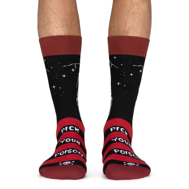 The wild lion is the star of these fun winter socks. The head of this animal takes center stage in the design, complemented by rhombuses in brown tones and footprint patterns on the lower part. The black background color makes all these drawings stand out even more and makes these socks versatile and effortless to wear.